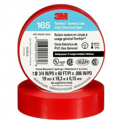 Cinta Aisladora 3M Temflex 165, 19mm y de 9m largo, diferentes colores Amarillo / Azul / Blanca / Roja /...