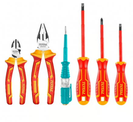 Juego de diferentes herramientas aisladas 1000V Total, código THKIST3062, 6 piezas. Trae: - 1 Atornillador plano 4.0 X 100 mm-...