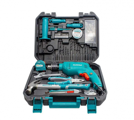 Kit Total Taladro percutor 680W + herramientas 115Pz (THKTHP1152) Taladro de impacto de 680W 1 Martillo 220g 1 Destornillador SL5.5...