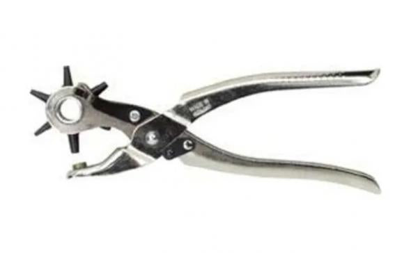 Alicate sacabocados alemán para realizar múltiples perforaciones en tela, cartón, cuero, y otros materiales blandos. Largo de 220 m/m.