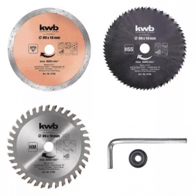 El kit de 3 hojas mini de 89 x 10 mm para sierra circular ofrece una hoja HSS con un...