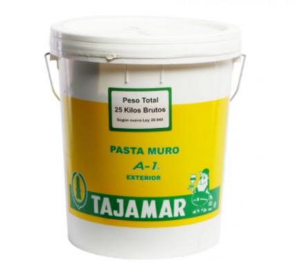 Pasta muro marca Tajamar de exterior A-1. Escoger formato de kilo, galón o tineta. Es un revestimiento plástico liso, preparado...