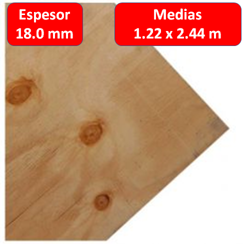 Plancha de madera terciado de segunda calidad, dimensiones de 1.22 x 2.44 metros. Escoger entre los diferente espesores: 15 -...