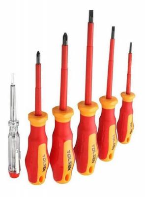 Juego de atornilladores aislados 1000V marca Tolsen, set de 6 piezas (V38013). Trae: - 1 Atornillador aislado plano de 3.0...